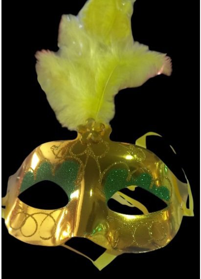 El diseño del antifaz combina un espectacular acabado metalizado con decoraciones en gibre verde, creando un contraste visual encantador. Además, sus plumas amarillas aportan un aire majestuoso y un toque de distinción que hará que no pases desapercibido. Cada elemento está cuidadosamente seleccionado para ofrecer una pieza que refleje calidad, creatividad y estilo.