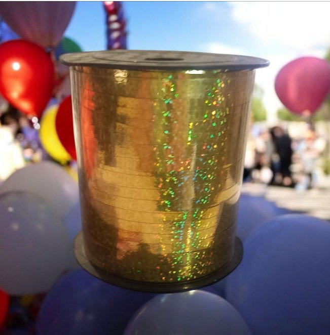 La cinta holográfica para globos en color dorado, con un largo aproximado de 225 metros, es el complemento perfecto para tus celebraciones. Su diseño único con acabado holográfico aporta un brillo increíble, reflejando la luz de manera fascinante y creando un ambiente mágico. Por su gran versatilidad, esta cinta dorada es ideal para decorar globos en bodas, cumpleaños, fiestas temáticas y eventos especiales.