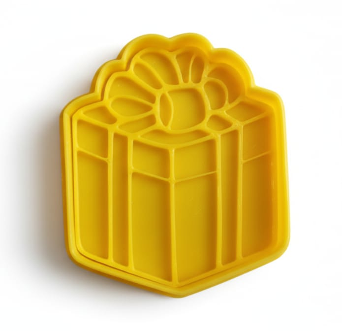 Este cortante, con su diseño basado en cajas de regalo, te permite personalizar tus galletitas y masas de manera atractiva y profesional. Cada detalle del diseño está cuidadosamente elaborado para capturar la belleza de un regalo, con líneas claras que resaltan en tus creaciones dulces. Ya sea para celebraciones especiales, ventas o simplemente para consentirte, este marcador transformará cualquier receta básica en algo extraordinario.